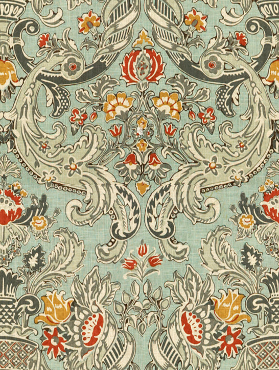 Greek Key Heirloom Fabric Hl Belami Caribbean 7 1/2 Yards