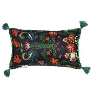 The intricate pattern featuring milfoil, bluebells and various Carpathian wildflowers make for a full and bountiful linen cushion. Decorated with a beautiful M monogram on the back, this cushion is hand-finished with green scallop crochet trimming and green cotton tassels. Coming with 100% duck feathers filling.
