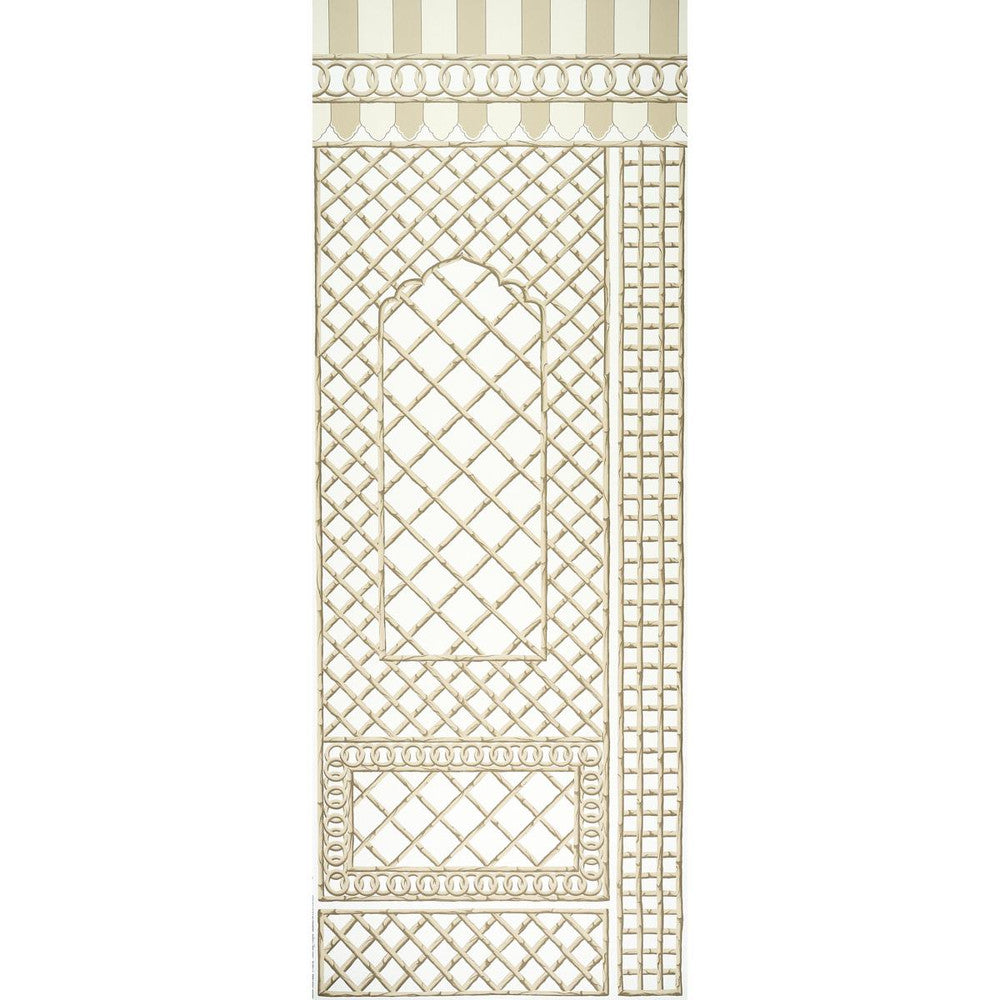 Schumacher Bamboo Trellis Panel B Neutral Wallpaper