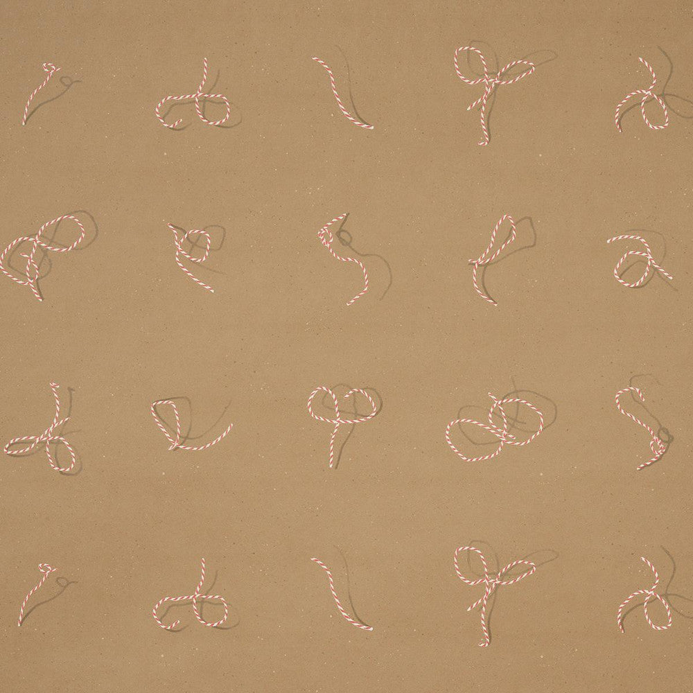 Based on original hand-drawn artwork, Butcher String wallpaper in red-and-white-on-brown by Charlap Hyman & Herrero with Pilar Almon features trompe loeil twists of two-tone twine. Beautifully printed on a fibrous ground, this wonderfully delicate large-scale design elevates the mundane for an elegant statement in any room.