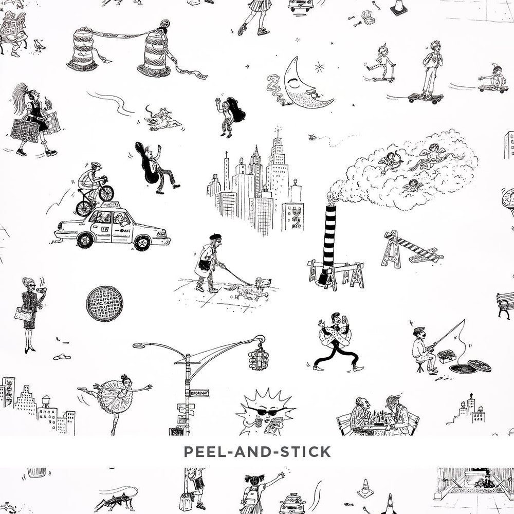 Part of the New Yorker Collection, this charming peel-and-stick wallpaper captures everything we love about the Big Applerats and all. A loose arrangement of whimsical urban vignettes illustrated with a quirky, stylized hand, Joana Avillezs Street Scenes is a fun small-scale design that makes an entertaining statement wherever it goes. Also available as a fabric.