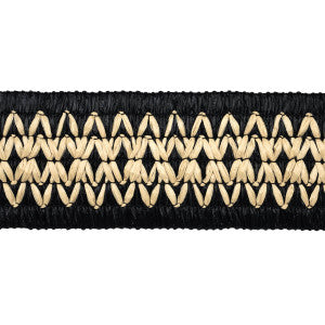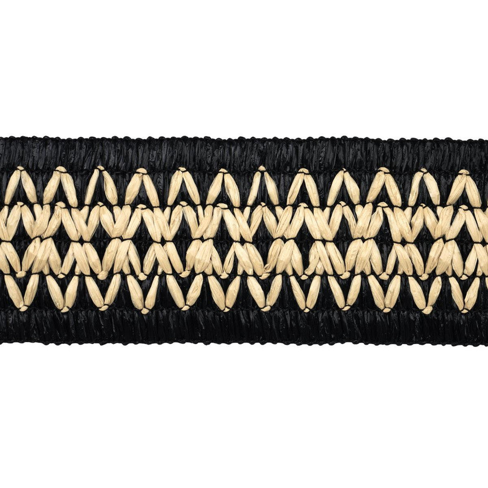 A fabulous, stretchy faux raffia trim with zigzag embroidery, Raphiinae Tape is a stylish, textural design with a rustic look. Suitable for indoor and outdoor use, this low-maintenance, elastic trim can be applied easily to upholstered pieces, pillows and window treatments regardless of shape for a finishing touch that is pretty and practical.