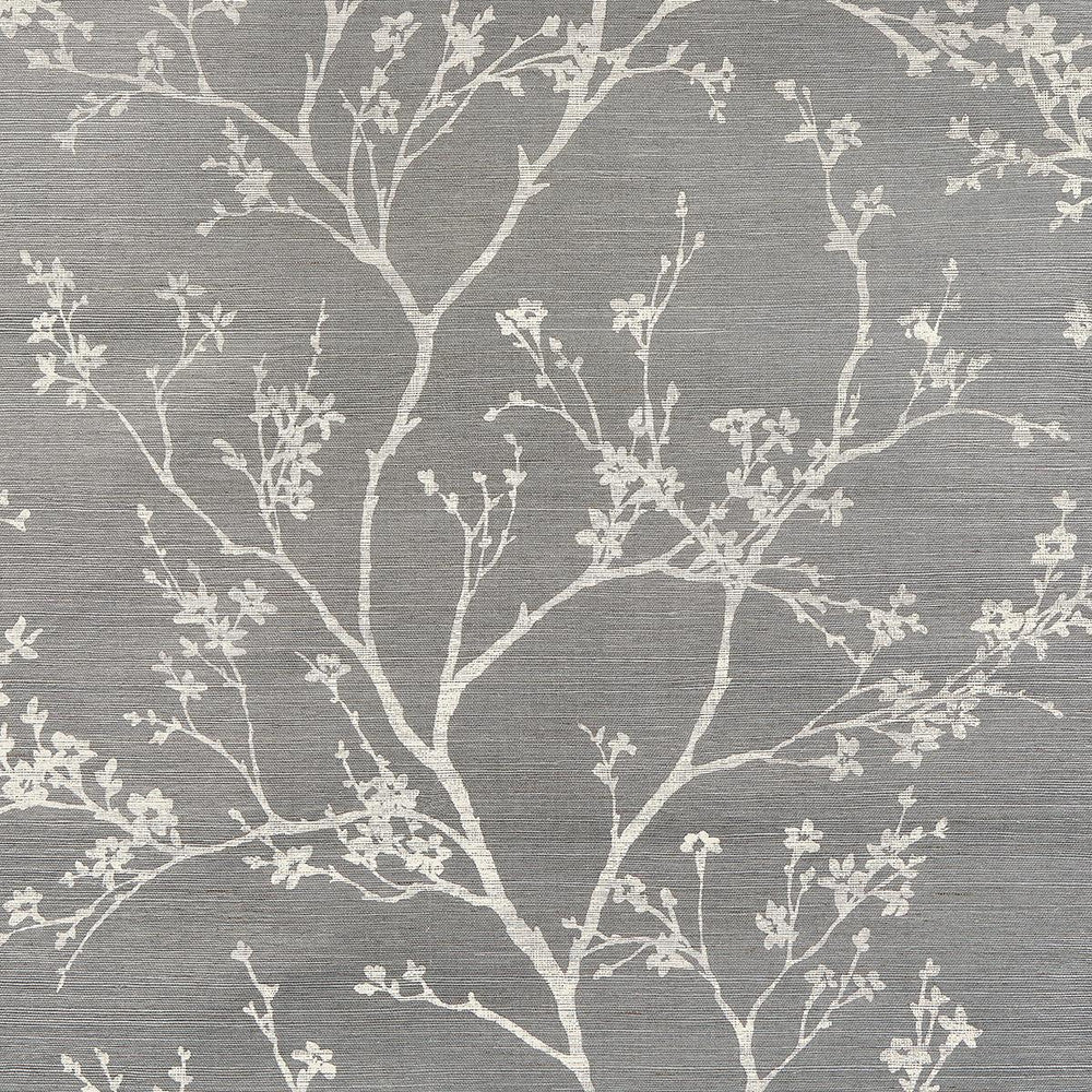 Twiggy Sisal in charcoal is a delicate yet graphic design that brings the outdoors in, with beautiful flowering branches silhouetted against a textured sisal ground.