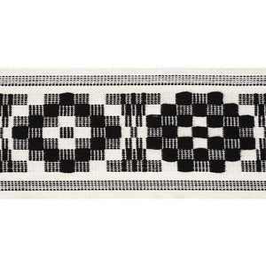 A silky, cotton-linen jacquard weave, this tape features a geometric design inspired by traditional quilt patterns. It adds a distinctive touch to curtains, furniture or pillows.