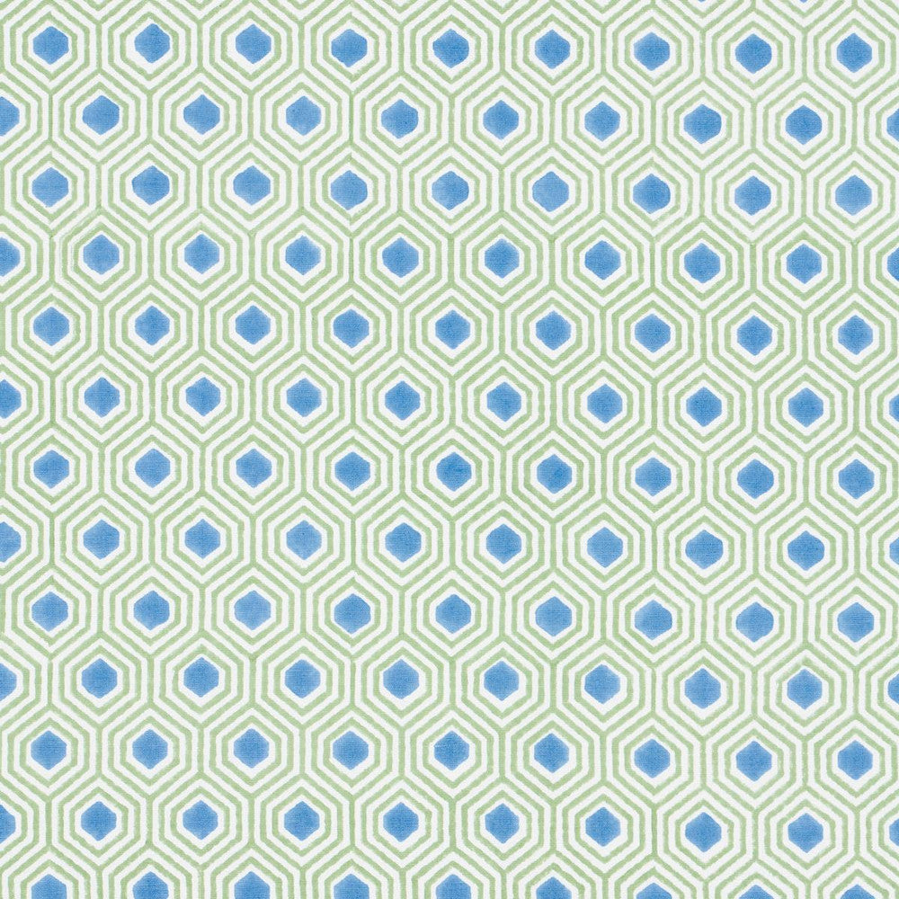 Schumacher Otis Hand Print Green & Blue Fabric