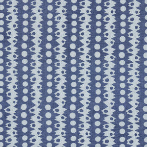 Created in collaboration with Drusus Tabor and printed by hand on a soft linen ground, Trickledown has the subtle variations and wonderful nuances that make artisanal textiles so special. With its irregular sawtooth and circle stripes, this unique medium-scale design is an imaginative take on a familiar form and a striking fabric for pillows, light upholstery or window treatments.