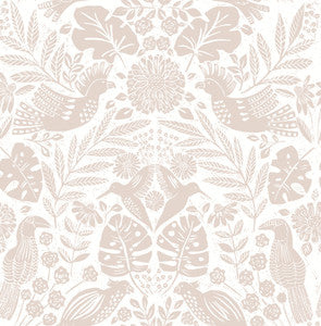 Nestle Pink Bird Block Print Wallpaper by A-Street Prints Designer